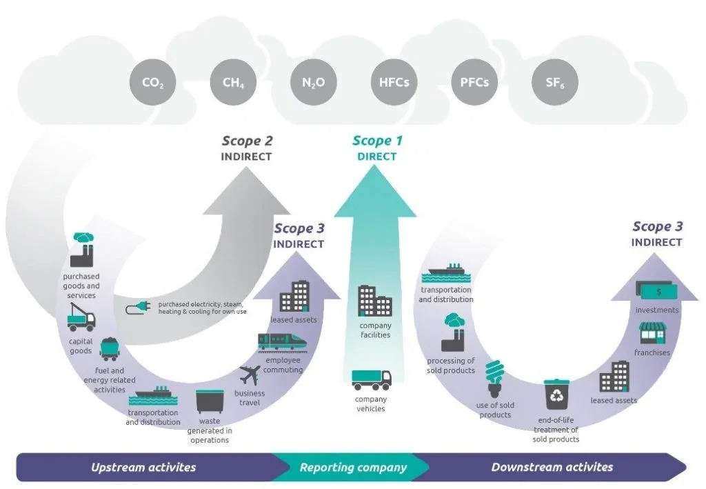 Scope 1, 2 and 3 emissions concern the different types of greenhouse gas (GHG) emissions (direct and indirect) that a company produces.